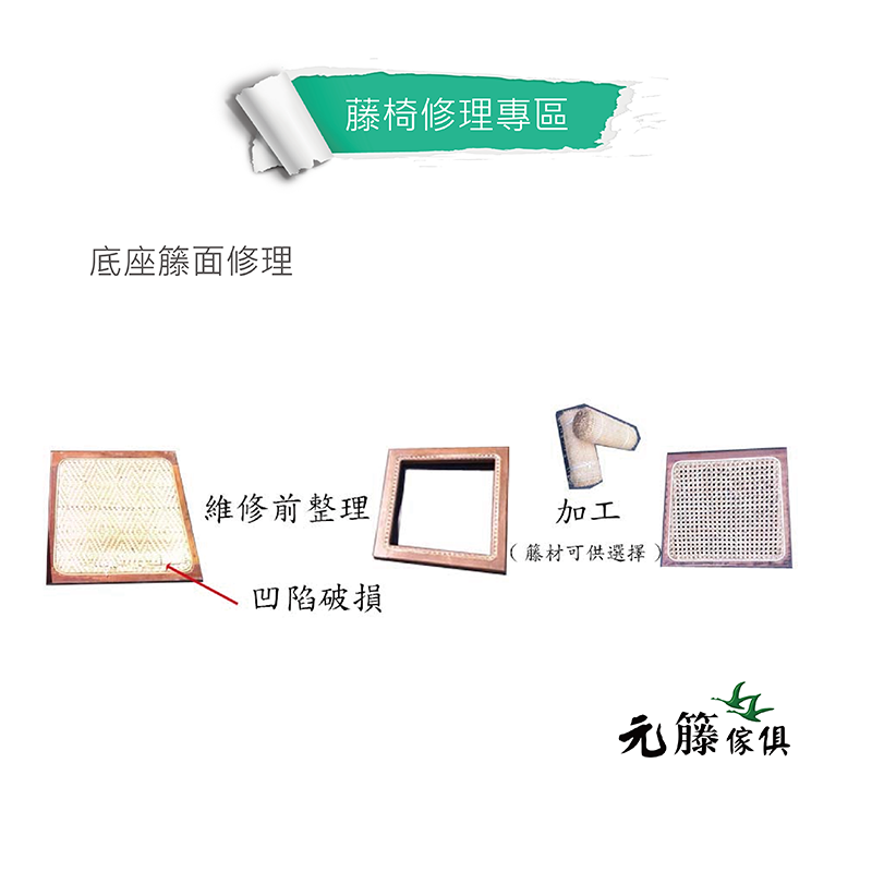 維修內容: 可利用藤編原料,將破損藤面換過